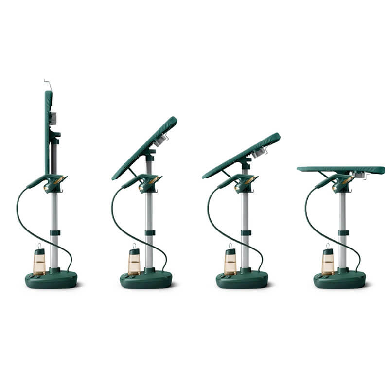 Thiết bị mang kiểu dáng đứng với khung vững chắc, tạo cảm giác ổn định khi sử dụng lâu dài. Phần giá treo tích hợp giúp giữ quần áo cố định, hạn chế xê dịch khi ủi. Bề mặt đỡ phía sau hỗ trợ xử lý các loại vải dày mà không cần thêm bàn ủi.