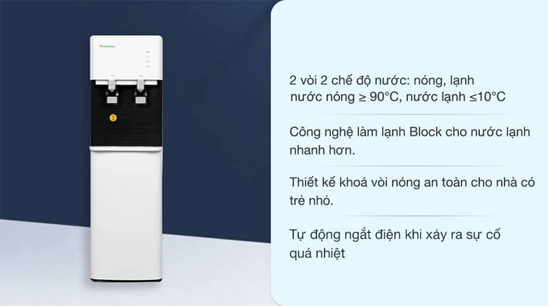 Cây nước nóng lạnh Kangaroo KG49A3 585W không chỉ đơn thuần là thiết bị cung cấp nước nóng lạnh, mà còn là giải pháp nâng tầm không gian sống. Với công suất làm nóng 500W, công suất làm lạnh 85W bằng Block, bình chứa inox 304, khóa vòi nước nóng, cùng thiết kế bình đặt dưới thông minh, sản phẩm mang đến sự tiện nghi, an toàn và tiết kiệm cho gia đình, văn phòng và các môi trường công cộng. Đây chắc chắn là một lựa chọn đầu tư bền vững, đáp ứng tốt cả nhu cầu sử dụng hằng ngày lẫn giá trị lâu dài.