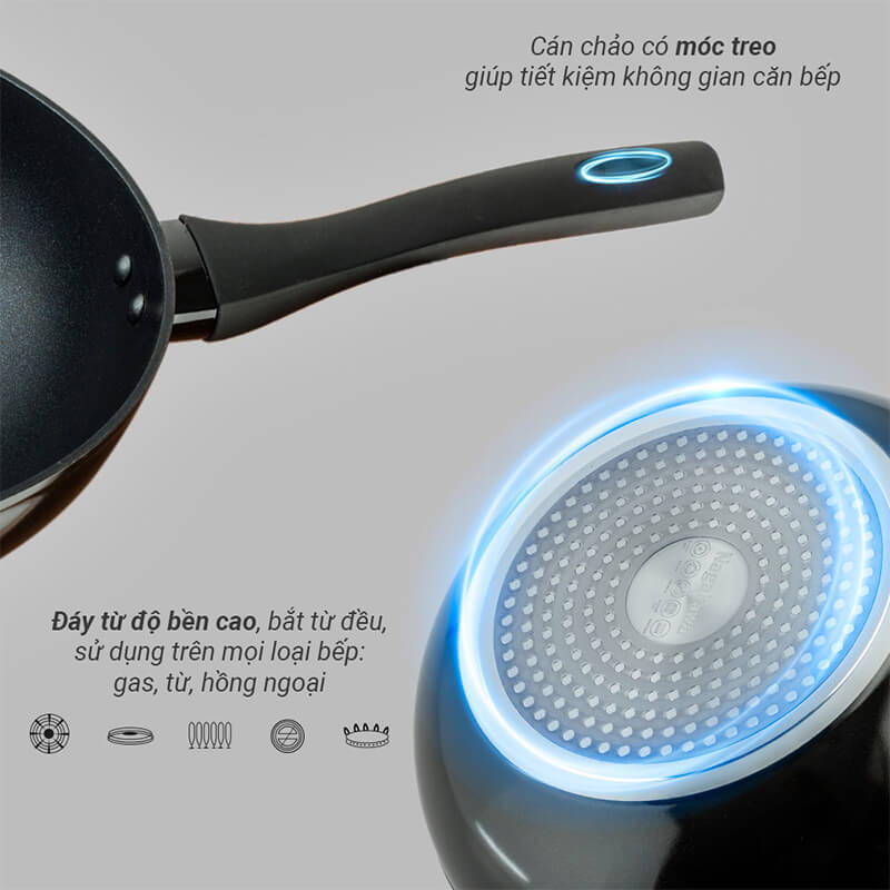 - Tương thích mọi loại bếp: Dùng tốt cho bếp gas, bếp hồng ngoại và bếp từ.