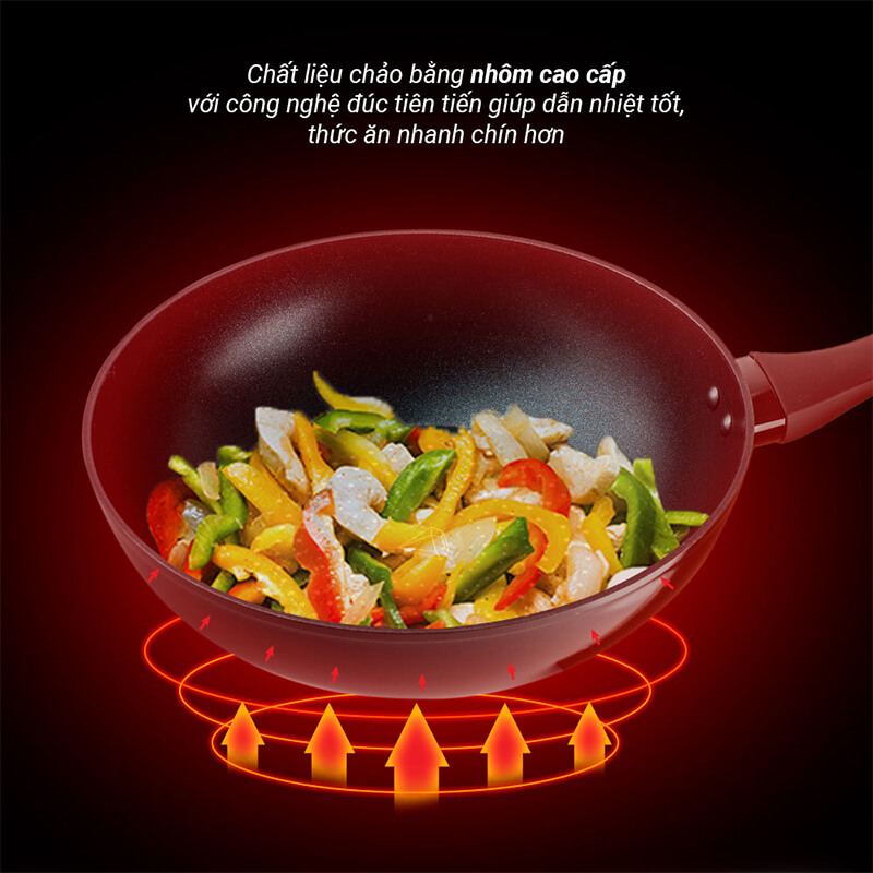 - Đáy chảo: Đáy từ – dùng cho mọi loại bếp (bếp gas, bếp hồng ngoại, bếp từ)
