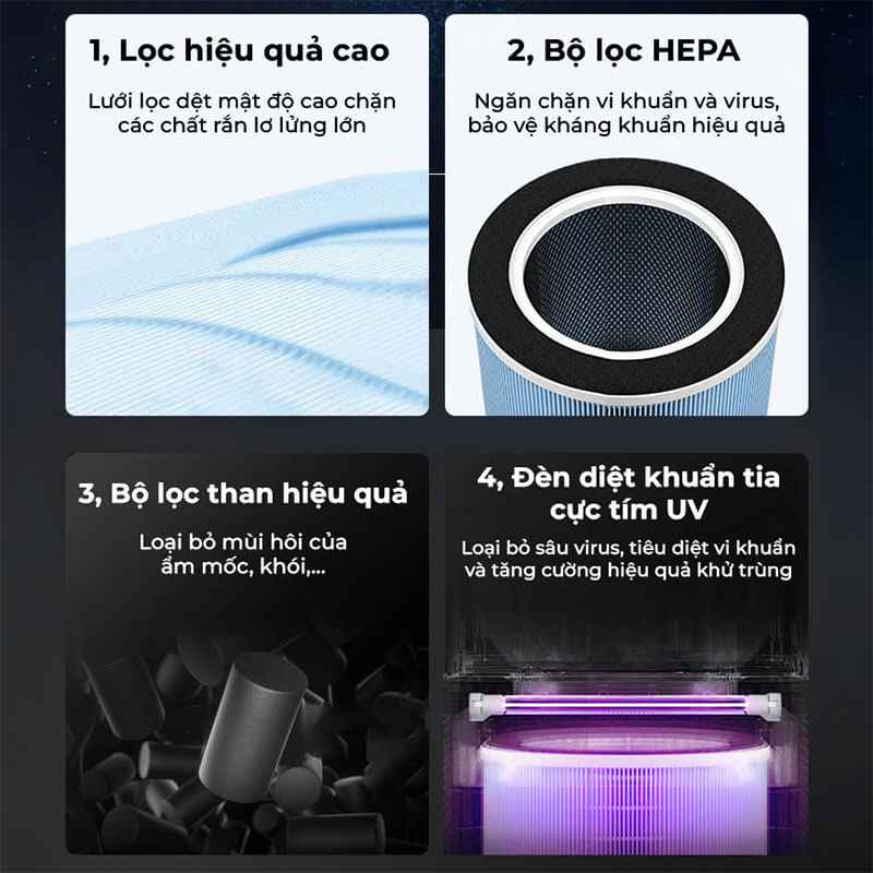 Màng lọc HEPA 5 lớp chuyên sâu, lọc bụi mịn hiệu quả