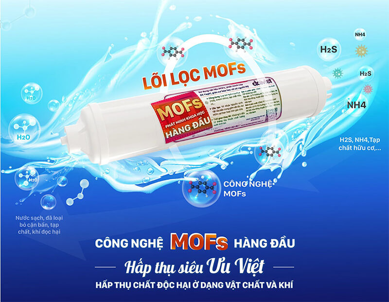 Điểm nổi bật nhất của Máy Lọc Nước RO Daikiosan DN101 Dr.H 2D, 11 Cấp Lọc – Công Nghệ MOFs, Lọc Sạch Vượt Trội chính là công nghệ MOFs (Metal-Organic Frameworks).