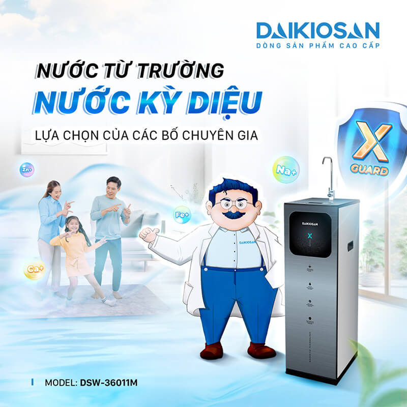 Máy lọc nước RO Daikiosan DSW-36011M X-Guard công nghệ tạo nước từ trường là giải pháp toàn diện cho sức khỏe gia đình. Với 11 cấp lọc mạnh mẽ, công suất lọc 18-20 lít/giờ, bình chứa nước từ trường 10 lít, kết hợp công nghệ AI bảo vệ 24/7, sản phẩm mang lại nguồn nước tinh khiết, giàu khoáng chất và an toàn tuyệt đối. Thiết kế sang trọng, linh kiện bền bỉ và chứng nhận chất lượng quốc gia khẳng định giá trị vượt trội. Đây chắc chắn là lựa chọn hoàn hảo cho mọi gia đình Việt mong muốn nâng cao chất lượng cuộc sống.