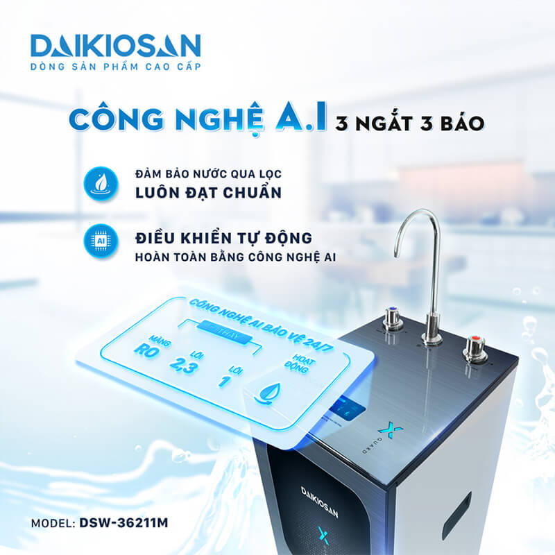 Máy lọc nước RO Daikiosan DSW-36211M X-Guard từ trường nóng nguội được tích hợp AI thông minh 3 ngắt – 3 báo: