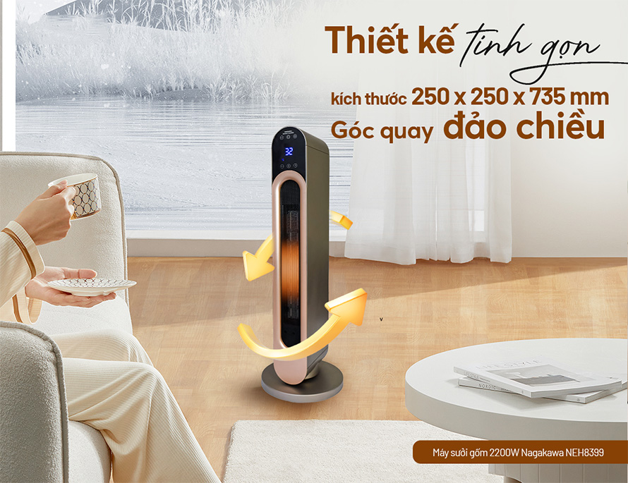 Máy Sưởi Gốm Nagakawa NEH8399 2200W: Giải Pháp Sưởi Ấm An Toàn, Sang Trọng Cho Mùa Đông Việt