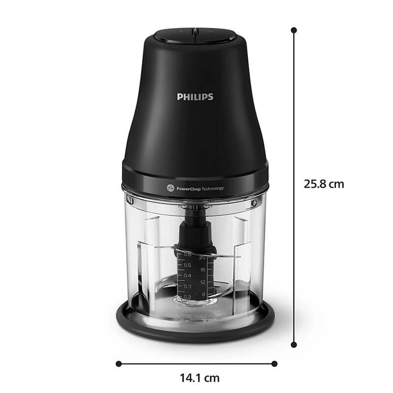 Máy xay thịt Philips HR1501/00, công suất 450W, cối 1 lít, công nghệ PowerChop xay đa năng thịt, rau củ, gia vị, thực phẩm nóng dưới 60°C và đá.