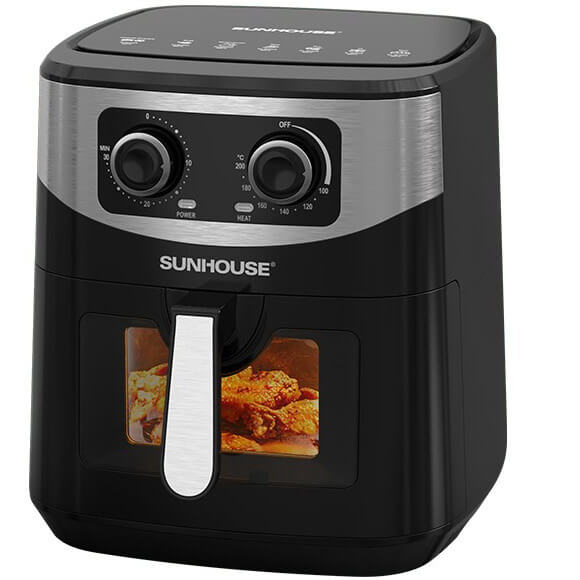 Nồi chiên không dầu 10.5L SUNHOUSE SHD4038 là lựa chọn tối ưu cho bếp gia đình nhờ dung tích cực đại 10.5 lít, cho phép chế biến thực phẩm kích thước lớn mà không cần chia nhỏ. Sản phẩm trang bị công nghệ Rapid Air 360 độ hiện đại, giúp thức ăn chín đều, giòn rụm và giảm đến 80% lượng mỡ thừa. Với thiết kế cửa kính trong suốt và bảng điều khiển núm xoay bền bỉ, chiếc nồi chiên không dầu Sunhouse to có kính quan sát này mang lại sự tiện nghi, an toàn và đảm bảo sức khỏe cho mọi bữa ăn.