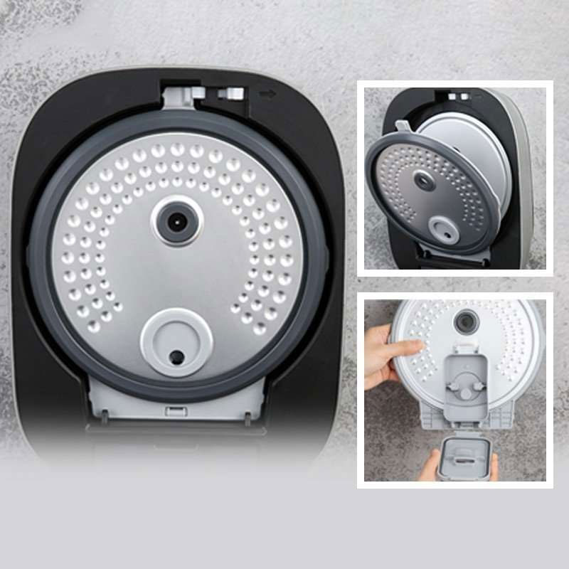 Nắp trong dạng tổ ong và van thoát hơi thông minh giúp hạn chế đọng hơi nước, giữ hạt cơm không bị nhão hay thiu. Đồng thời, thiết kế này còn giúp nồi dễ vệ sinh và hạn chế vi khuẩn, giữ vệ sinh tối đa trong quá trình nấu và bảo quản cơm.