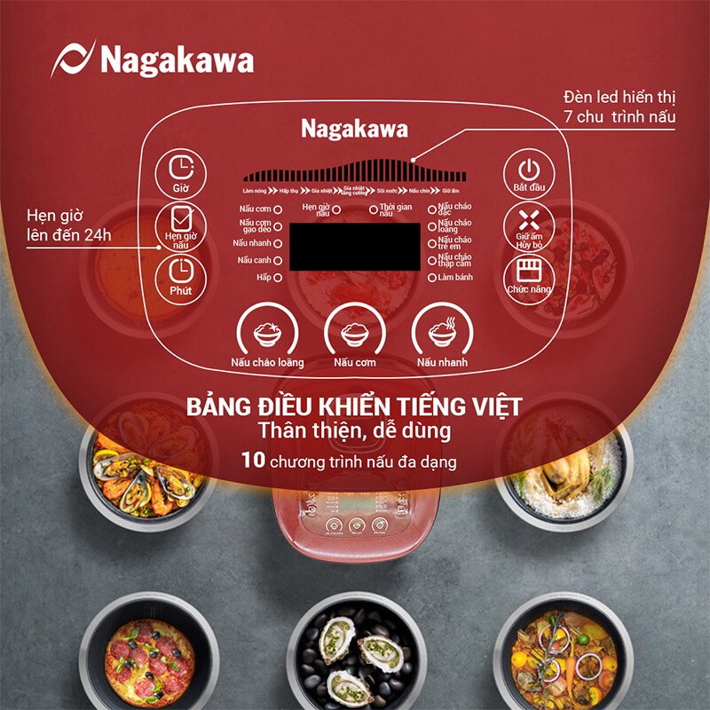 Nagakawa NAG0135 tích hợp 10 chế độ nấu thông minh, đáp ứng đa dạng nhu cầu nấu nướng: